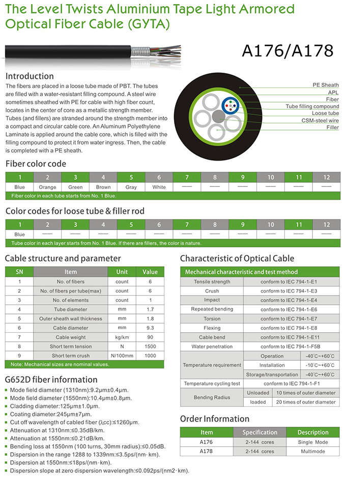 The Level Twists Aluminium Tape Light Armored Optical Fiber Cable (GYTA)