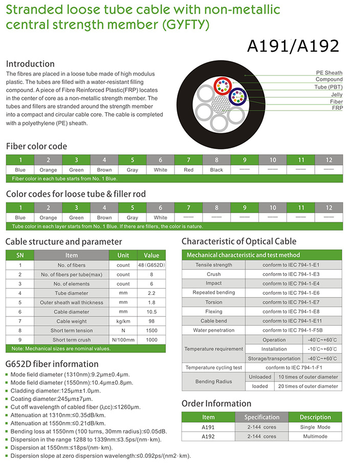 Stranded Loose Tube Cable With Non-Metallic Central Strength Member (GYFTY)
