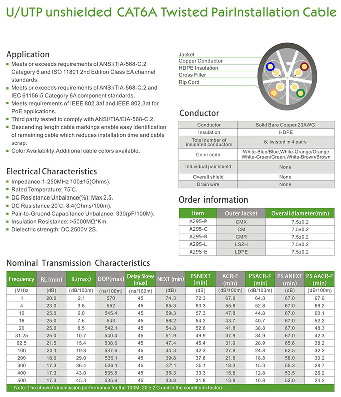 U/UTP Shielded CAT 6A Twisted Pair Installation Cable