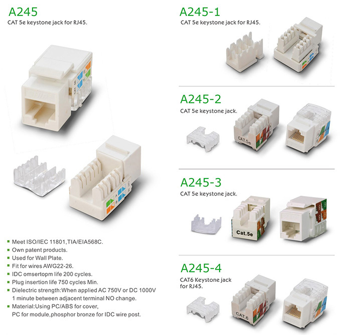 Cat 5e/Cat6 keystone jack (for RJ45).